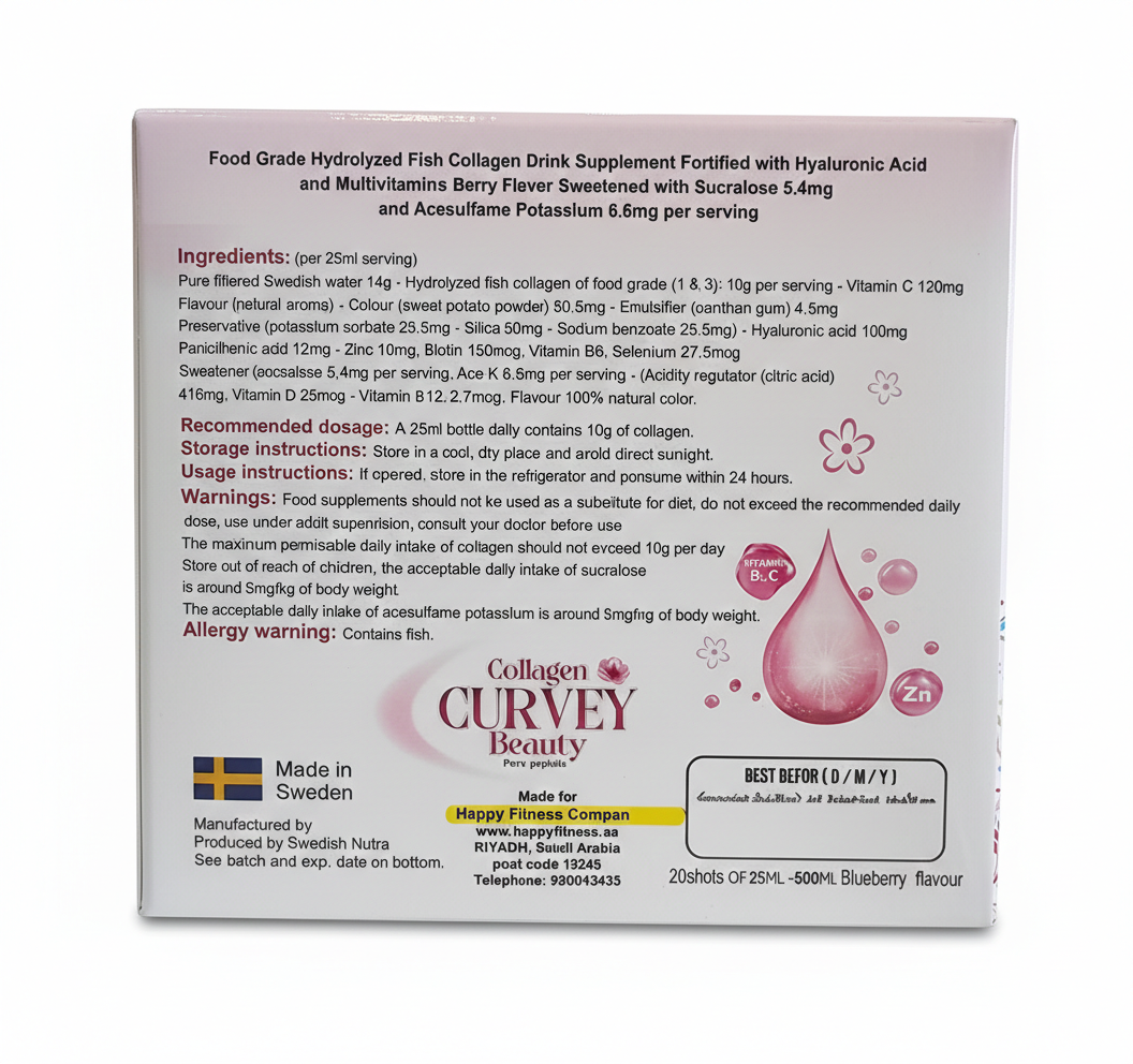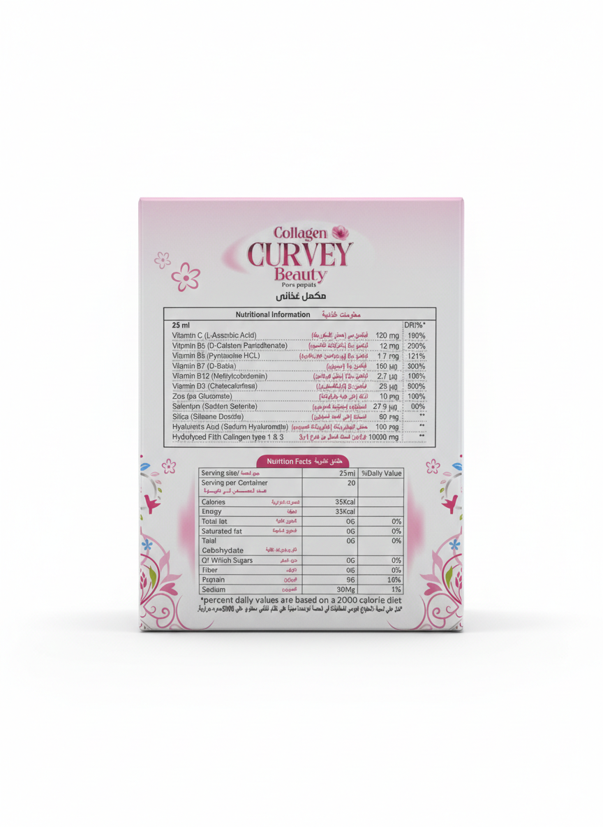 سواء كنتِ تبحثين عن تحسين ملمس بشرتك، أو تقوية شعرك، أو تعزيز مظهر أظافرك… فإن كولاجين كيرفي بيوتي هو روتينك الجمالي المتكامل الذي يمنحك نتائج ملموسة مع الاستخدام اليومي.